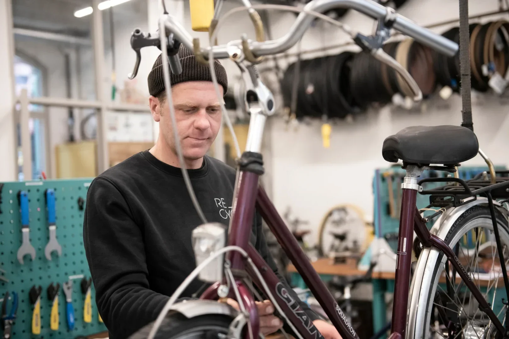 Wist jij dat er in Amsterdam meer fietsen zijn dan inwoners? Bij Re_Cycle weten we dat ook. Hier worden fietsen gerepareerd en opgebouwd. Ook verkoopt Re_Cycle nieuwe fietsen, duurzame (regen)kleding en fietsaccessoires van hoge kwaliteit.